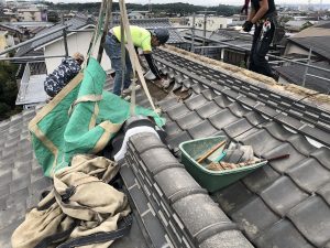そして瓦の下には多くの土が敷き詰められています。(これを「土葺き」と言います。最近の新築では使われる事は少ないです)