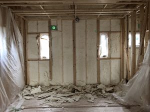 12月中旬に行われた構造見学会の会場となったお宅の壁・天井の断熱施工作業がはじまりました。