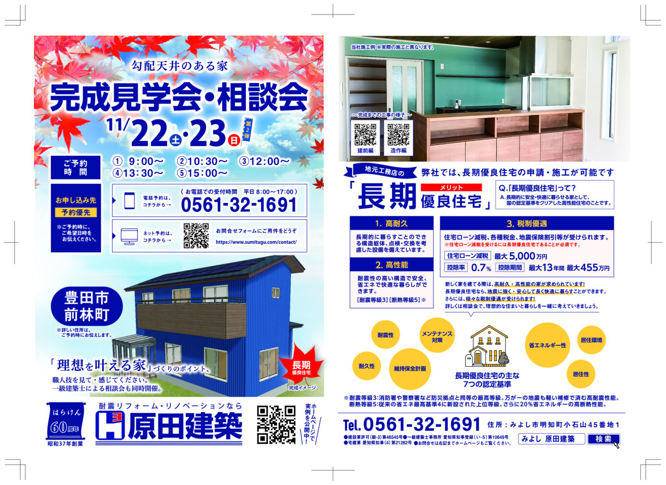 11/22㈯.23㈰「完成見学会・相談会」開催&【ご予約方法】