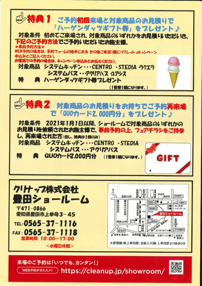 ※原田建築主催のイベントではございませんので直接 クリナップ 豊田ショールーム様にご連絡(下記)の上、ご来場ください