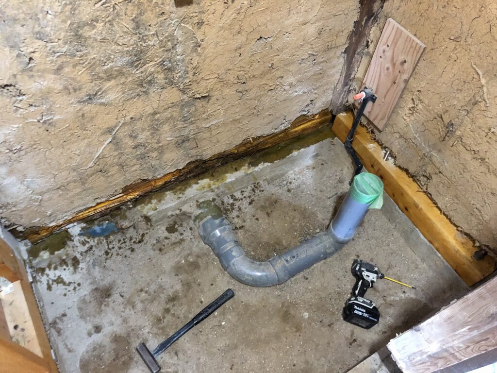 予算の都合、また施工範囲を広げたくなかった為、耐震評点目標値を1.0ではなく0.7として段階改修としました。