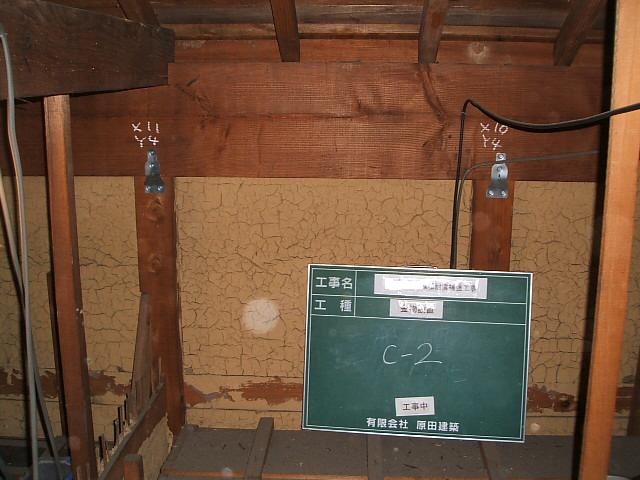 〇軒高が約4.0m(丈三)と高く、筋交いや構造用合板による施工が適切ではありませんでした。屋根の軽量化をし、必要耐力を少なくすることで補強計画をしました。